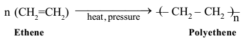 The process in which many molecules of an alkene add together to form a larger molecule is called addition polymerization.