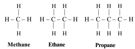 The simple alkanes containing upto three carbon atoms (methane, ethane and propane) have only one possible structure. There is only one way in which the carbon atoms can be linked together.