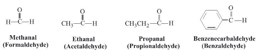 In the IUPAC system of nomenclature, aliphatic aldehydesare named as alkanals. The final -e in the name of the corresponding alkane is substituted by -al.