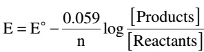 where E = the electromotive force of the cell E° = the standard electromotive force of the cell