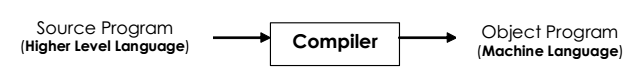 The software (set of programs) that reads a program written in high level language and translates it into an equivalent program in machine language is called as Compiler. The program written by the programmer in high level language is called source program and the program generated by the compiler after translation is called as object program.