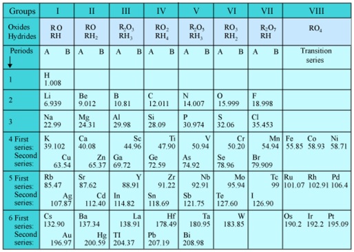 D'mitri Mendeleev, a Russian chemist, studied the properties of all the 63 elements known at that time and their compounds. On arranging the elements in the increasing order of atomic masses, he observed that the elements with similar properties occur periodically.