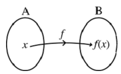 To denote functions, use the letters f, g, h, etc. Thus for a function, each element of A is associated with exactly one element in B. The set A is called the domain of the function f and B is called co-domain of f. If x is in A, the element of B associated with x is called the image of x under f. The set of all images of the elements of A is called the range of the function f. The range is a subset of the co-domain.