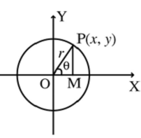 Consider a circle with radius rand centre at the origin. Let P(x, y) be any point on the circle. Assume that OP makes an angle θwith the positive direction of x-axis. Draw the perpendicular PM to the x-axis.