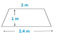 1. The upper surface of a table is trapezium. Find the area if its parallel sides are 2 m and 2.4 m. Perpendicular distance between two parallel lines is 1 m.