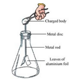 It consist of a metal rod on which two leaves of aluminum foil are fixed to one end and a metal disc at the other end. The leaves are kept inside a conical flask and it is corked to isolate it from the atmospheric air.