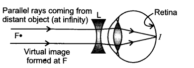 Question 1. A student sitting at the back of the classroom cannot read clearly the letters written on the blackboard. What advice will a doctor give to her? Draw ray diagram for the correction of this defect.