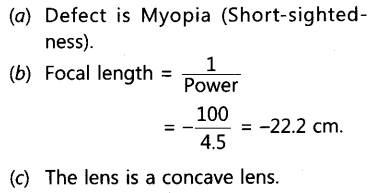 Question 3. A person needs a lens of power – 4.5 D for correction of her vision.