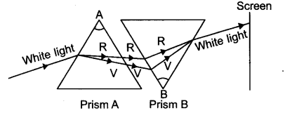 Question 4. How will you use two identical prisms so that a narrow beam of white light incident on one prism emerges out of the second prism as white light? Draw the diagram.
