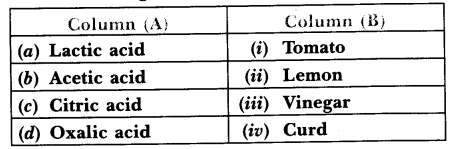 1.Match the acids given in Column (A) with their correct source given in Column (B).