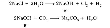 Ans.‘B’ is NaOH. It absorbs moisture from atmosphere because it is hygroscopic in nature. It is obtained by product of chlor-alkali process.