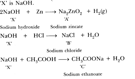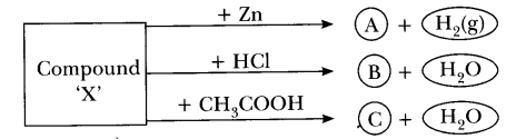 13.Identify the compound X on the basis of the reactions given below. Also, write the name and chemical formulae of A, B and C.