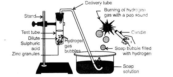 Test: Bring a burning splinter near the gas. The gas will burn with ‘Pop’ sound which shows gas is H2.
