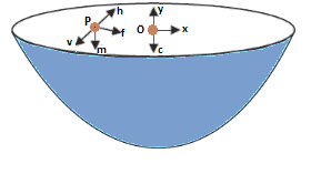 Inside a hollow sphere, gravitational forces on any particle at any point is symmetrically placed. However, in this case, the upper half of the sphere is removed. Since gravitational intensity is gravitational force per unit mass it will act in direction point downwards along ‘c’.