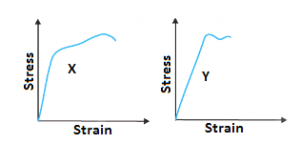 Q3. Given below are stress-strain curves for two materials X and Y.