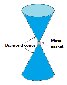 Q17. A diamond anvil cell is used to create extremely high-pressure environments. The narrow ends of the anvil have a diameter of 0.50 mm and the wide ends are subjected to a compressive force of 80,000 N. Calculate the pressure at the tip of the anvil.