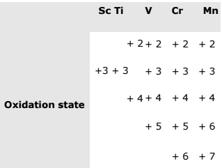 In the table below, the oxidation states of the first half of the first row of transition metals are displayed.