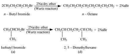 (v) When methyl bromide is treated with sodium in the presence of dry ether, ethane is formed. This reaction is known as the Wurtz reaction.