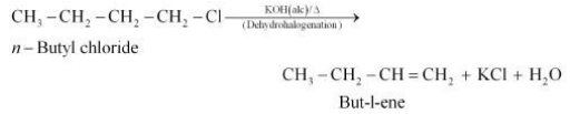 (i) When n−butyl chloride is treated with alcoholic KOH, the formation of but−l−ene takes place. This reaction is a dehydrohalogenation reaction.