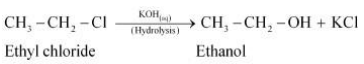 (iv) When ethyl chloride is treated with aqueous KOH, it undergoes hydrolysis to form ethanol.