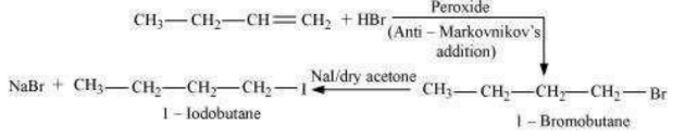 Question 10.7: Write the equations for the preparation of 1−iodobutane from