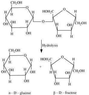 For example, in a sucrose molecule, two monosaccharide units, \(\alpha\) -glucose and \(\beta\) – fructose, are joined together by a glycosidic linkage.