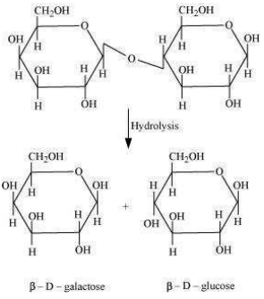 (b) On hydrolysis of lactose, it will give \(\beta\) -D-galactose and\(\beta\) -D-glucose.