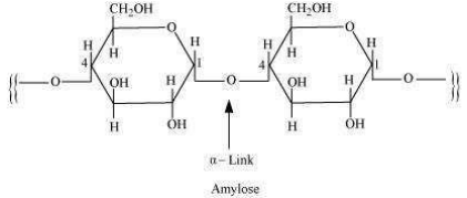 Starch consists of two components – amylopectin and amylose. Amylose have a longer linear chain of \(\alpha\) – D ?(+)?glucose units joined by C1?C4 glycosidic linkage (\(\alpha \) -link).