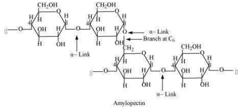 While amylopectin is a branched-chain polymer of \(\alpha\) -D-glucose units, in which the chain is formed by C1?C4 glycosidic linkage and the branching occurs by C1?C6 glycosidic linkage.