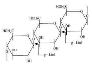 While, cellulose is a straight-chain polysaccharide of \(\beta\) – D-glucose units joined by C1?C4 glycosidic linkage (\(\beta\) – link).