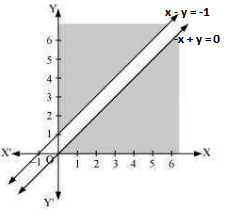 The region determined by the constraints x – y ≤ -1, -x + y ≤ 0, x ≥ 0, y ≥ 0 is as follows :