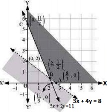 \(A\left ( \frac{8}{3},0 \right )\), \(B\left ( 2,\frac{1}{2} \right )\) and \(C\left ( 0,\frac{11}{2} \right )\)