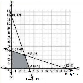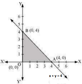 The corner points of the feasible region are O (0, 0), A (4, 0), and B (0, 4). The values of Z at these points are as follows :