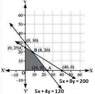 5x + 8y \(\leq\) 200….. (2)