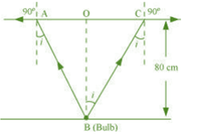 Actual depth of the bulb in water, d1=80 cm =0.8 m