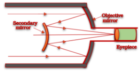 Soln: The following figure shows a Cassegrain telescope consisting of a concave mirror and a convex mirror.
