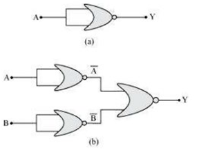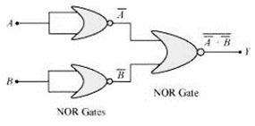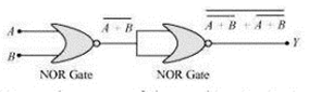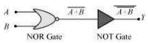(Hint: A = 0, B = 1 then A and B inputs of second NOR gate will be 0 and hence Y=1. Similarly work out the values of Y for other combinations of A and B. Compare with thetruth table of OR, AND, NOT gates and find the correct one.)