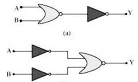 \(Y = \bar{A} . \bar{B} = \bar{ \bar{A}} + \bar{ \bar{B}} = A + B\)