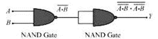 Hence, the output from this combination of NAND gates can be shown as: