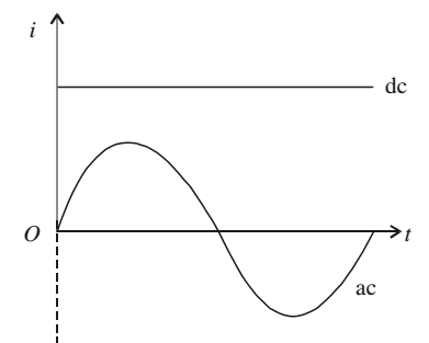 A current whose magnitude changes continuously and direction changes periodically, is said to be an alternating current.