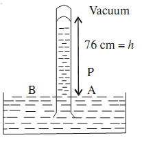 He took a tube of about 1 m long filled with mercury of density 13,600 kg m–3 and placed it vertically inverted in a mercury tub. He observed that the column of 76 cm of mercury above the free surface remained filled in the tube.
