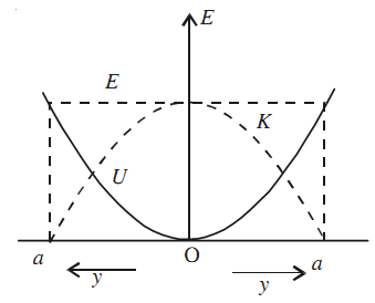 As the displacement y from the mean position increases, the kinetic energy decreases but potential energy increases. At the mean position, the potential energy is zero but kinetic energy is maximum. At the extreme positions, the energy is wholly potential. However, the sum K + U = E is constant.