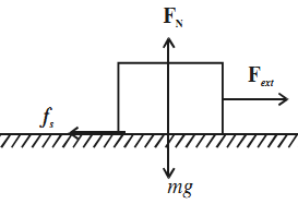 Consider a block resting on some horizontal surface. Let some external force Fext be applied on the block. Initially the block does not move. This is possible only if some other force is acting on the block. The force is called the force of static friction and is represented by fs.