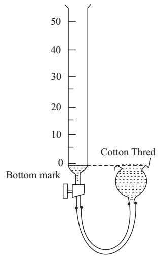 This ensures that only pressure of water column in the burette above this marl,, causes the flow of water during the experiment. Put a cotton thread across the diameter of thistle funnel. This helps water to overflow with small level difference too, which may be stopped by surface tension of water.