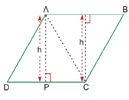 The area of parallelogram is equal to base multiplied by its corresponding height.