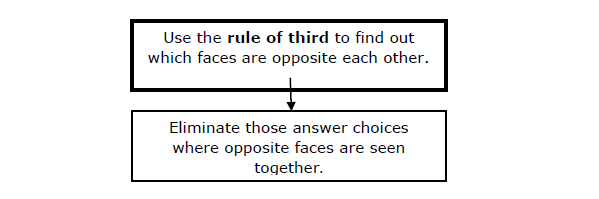 With this, the discussion on how to solve questions of type II is completed. You have to use the rule third to determine which faces are opposite to each other. The following diagram will give the complete information about this approach.